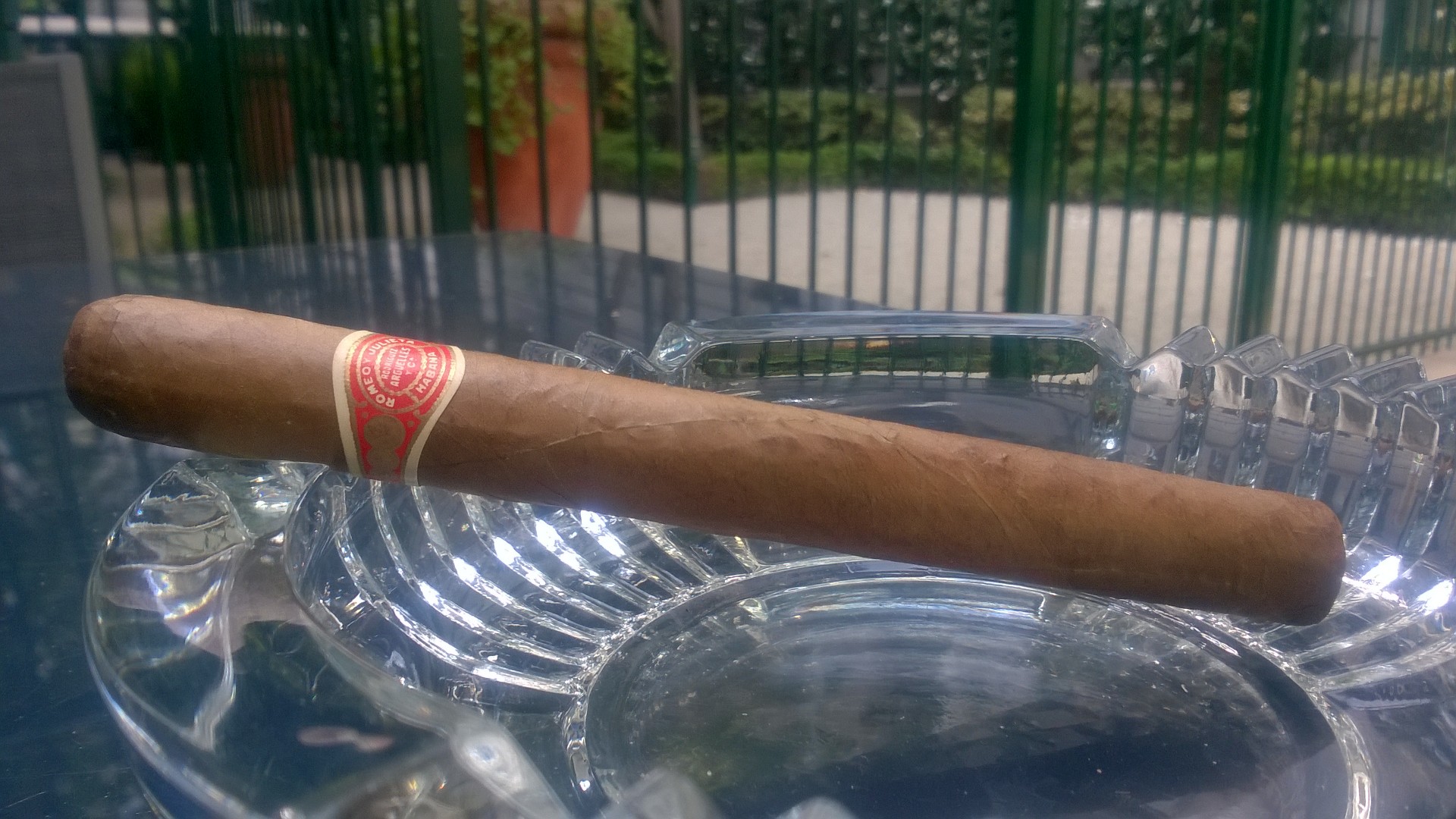 Today’s cigar is a closed-foot custom, about a Gordito size. It was a gift, and beyond what you can tell by looking at it, I know absolutely nothing about it. It came with a bunch of other cigars and no commentary. It has a nice, dark, oily wrapper. I pick the foot and take a dry inhale. The draw is very loose. Lit, it begins nicely. Sweet cream and coca. Touch of honey.